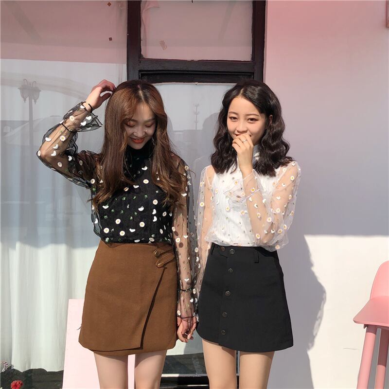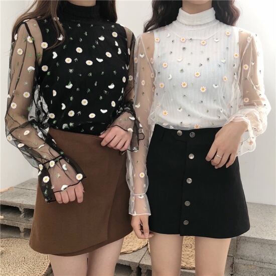 インナー付き透け感花柄チュールブラウス女子会やデートにFKOM8717