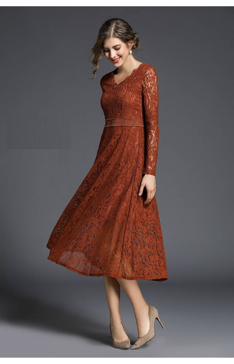 総レースAラインロングワンピースカジュアルダウンしても◎FKOM8725