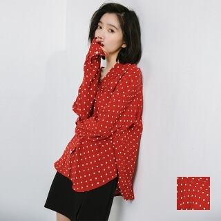 Vネック ブラウス シャツ ドット柄