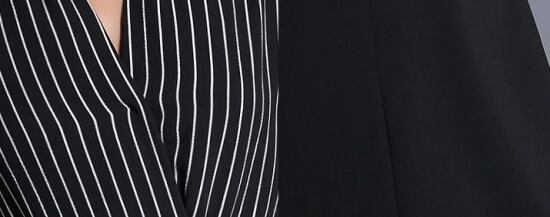 ストライプ柄Vネックフレアワンピース通勤やお買い物にFKOM8836
