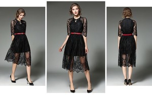 ロング丈レースワンピースお呼ばれやパーティーにFKOM8841