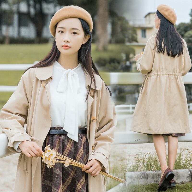 カラートレンチコートスプリングコート通勤やお買い物にFKOM7787