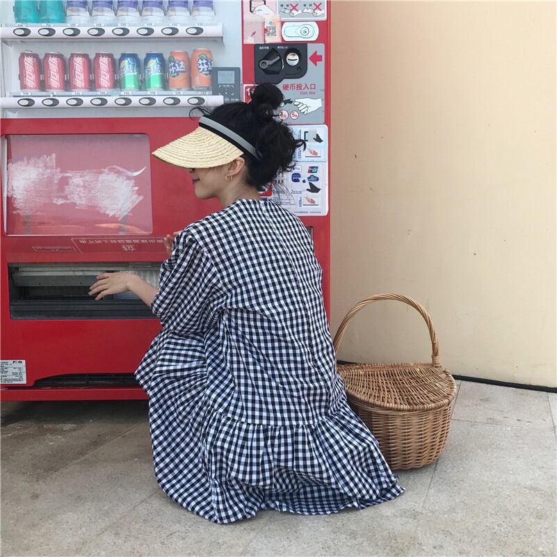 ギンガムチェックホワイトフリルチュニックワンピースFKOMA799