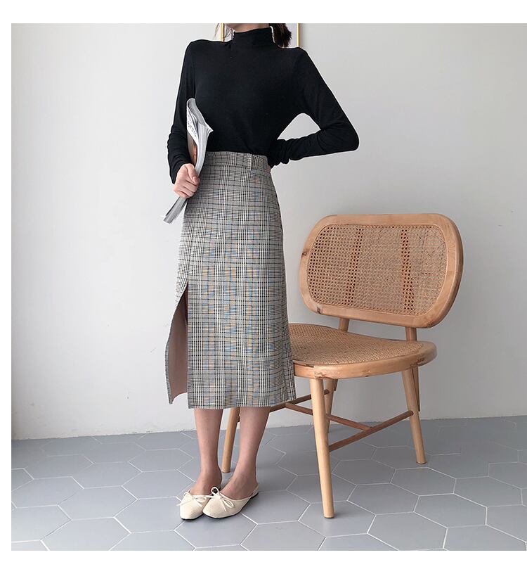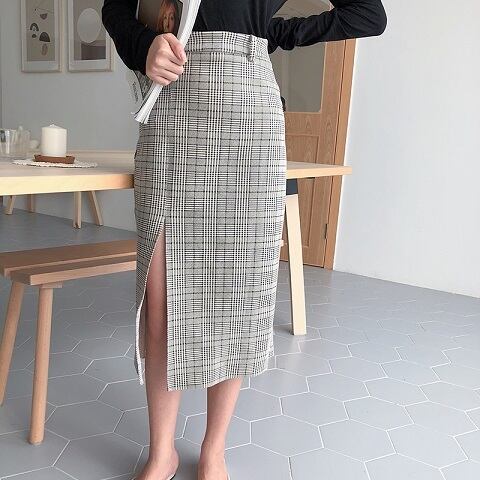 スッキリ見せ タイトなグレンチェックスカート ak008