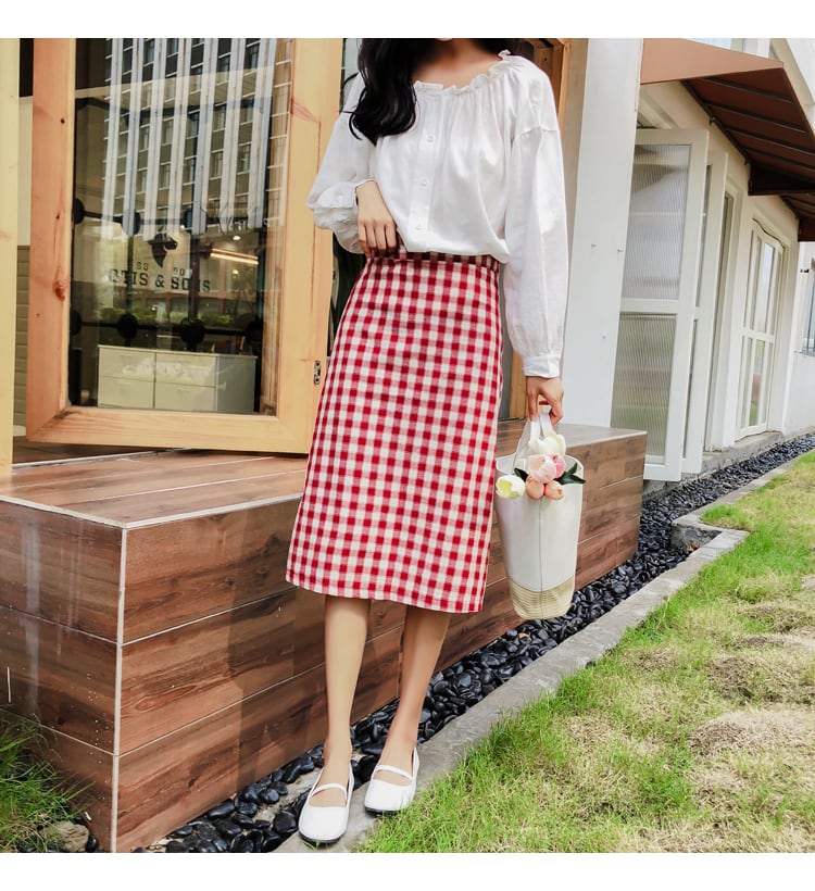 ミモレ丈 ギンガムチェック タイトスカート ak020