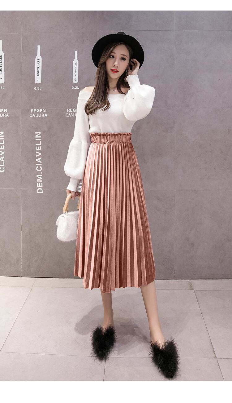 動くたびに光沢に惹かれる魔法のプリーツスカート。