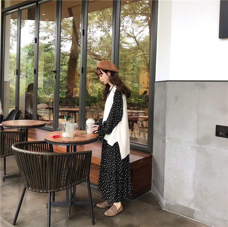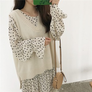 SETふんわりドットワンピースとベスト ak048
