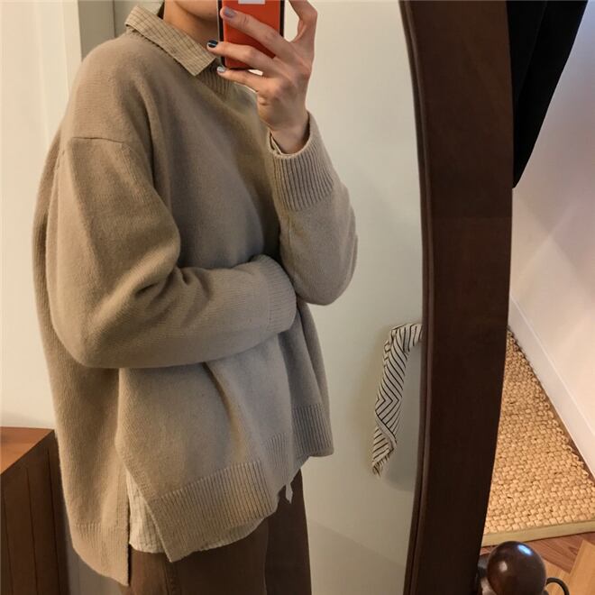 ステップドヘム ビッグシルエット ニットセーター ak090