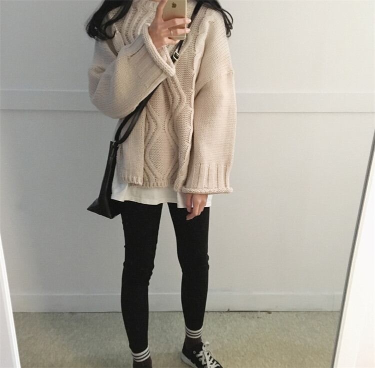 ざっくりニットで楽ちんコーデなのにオシャレ!