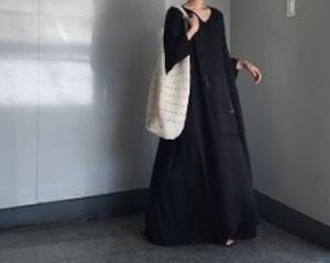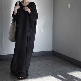 ブラック無地ロングワンピース マタニティにもピッタリak099