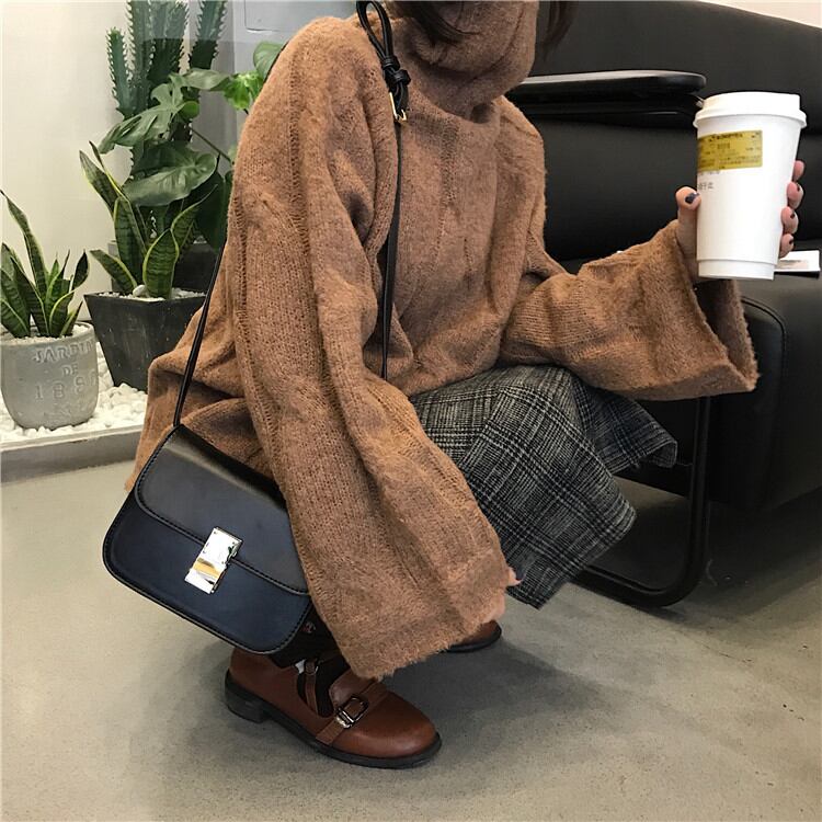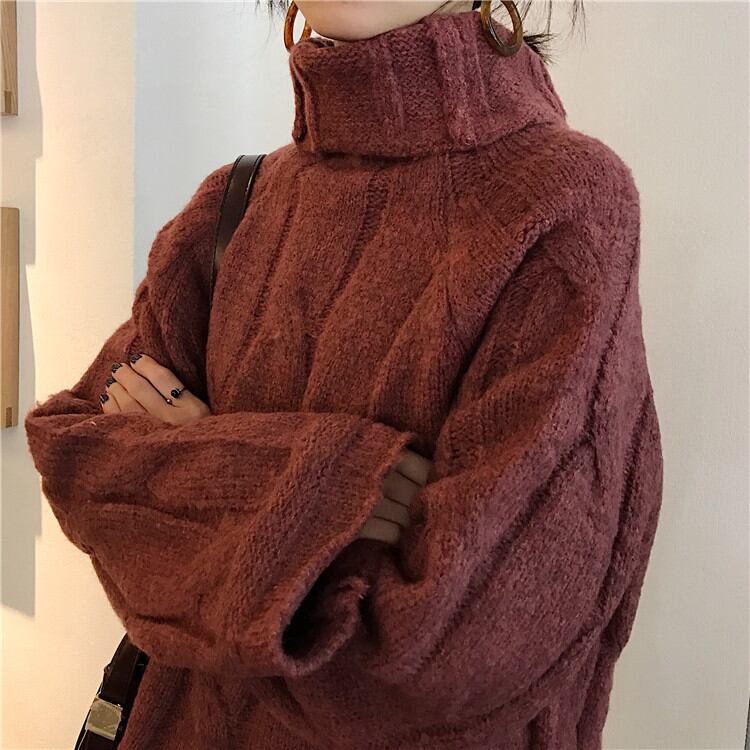 長袖 ニット ボリュームスリーブ フレア タートルネック