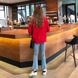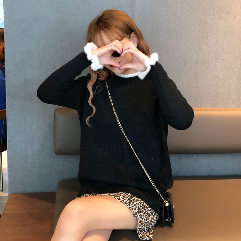 襟袖かわいい バイカラーガーリー Uネックニット ak133