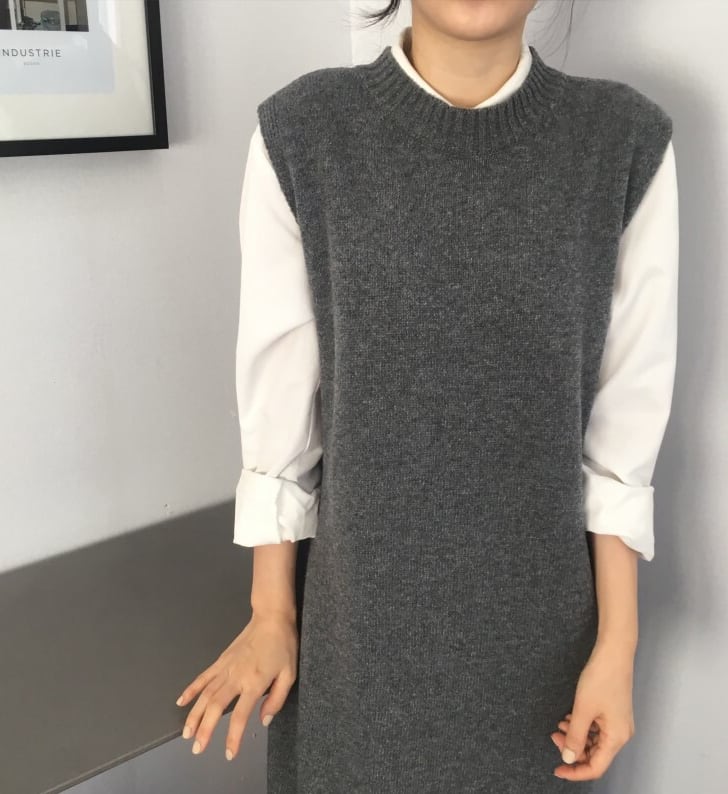 ワンピース ニット ノースリーブ 丸首 長袖 秋冬 オルチャン