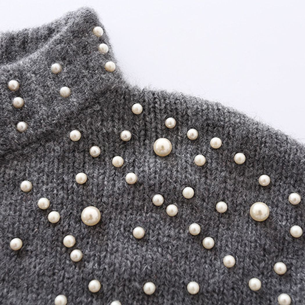ニット パール ビッグシルエット 襟なし 秋冬 オルチャン