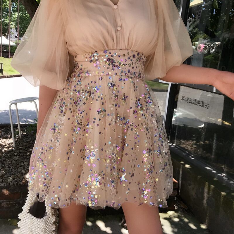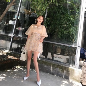 スパンコール ふんわり パーティードレス お呼ばれコーデに fsk0027