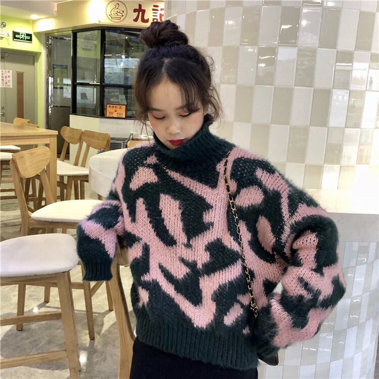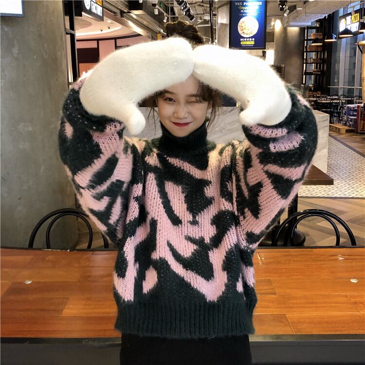 もこもこ 秋冬 アウター 大きめ カジュアル オーバーサイズ トップス ニット ハイネック 派手 存在感 個性