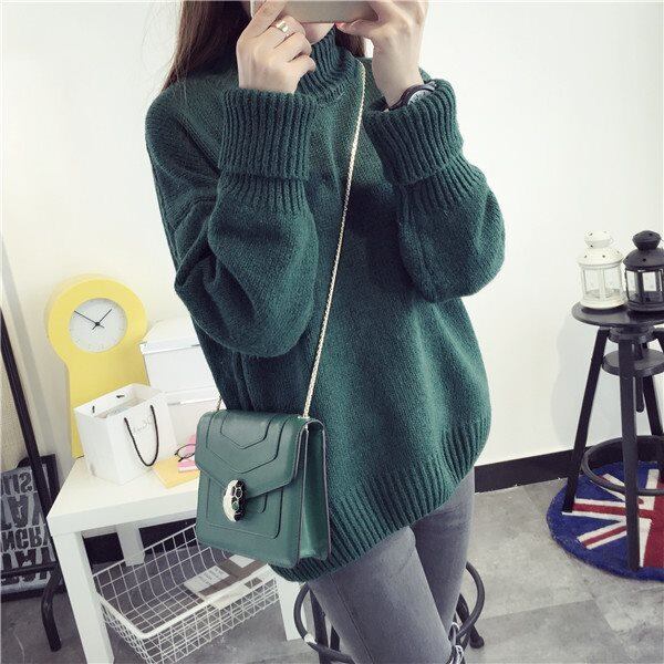 秋冬 ゆったり タートル ハイネック ニット セーター ボリューム袖 シンプル トップス