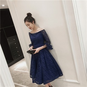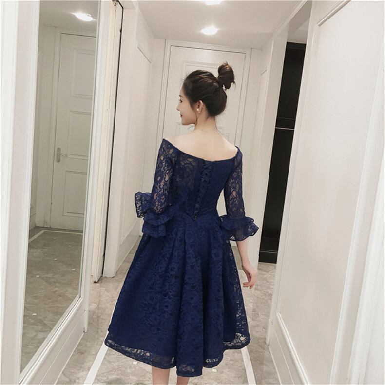 ふんわり フレア袖 総レース ワンピースドレス オフショルダー 膝丈 ミディアム丈 袖付 Aライン フレア 結婚式 パーティー お呼ばれ 大人女子 フェミニン