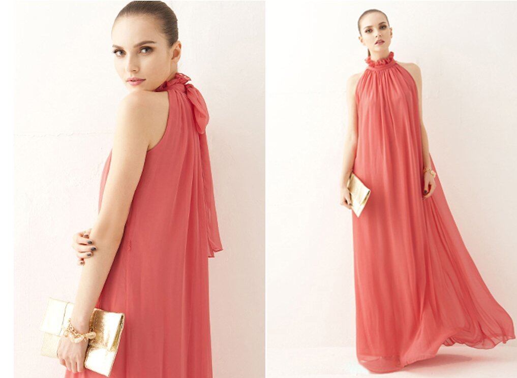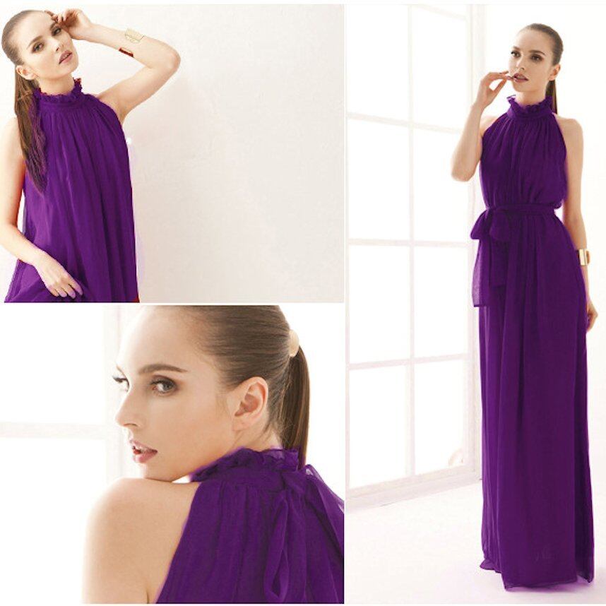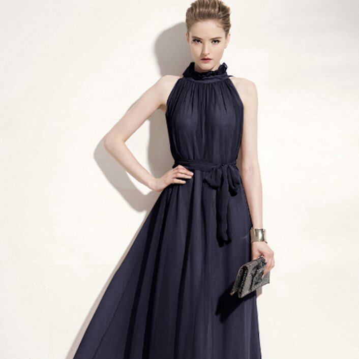 リゾート感 シフォン ホルタ―ネック ロング ワンピース ドレス fsk0125