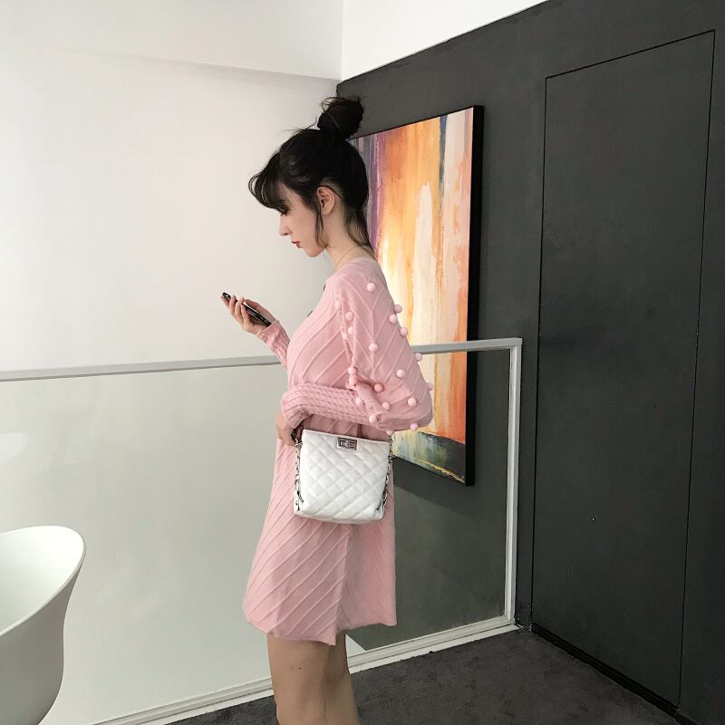 パフスリーブ ポンポンニットワンピース ミニ丈 フェミニン ルーズ☆ fsk0126