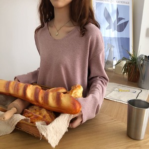 Vネック カットオフ 長袖 ゆるニット トップス インナー☆ fsk0157