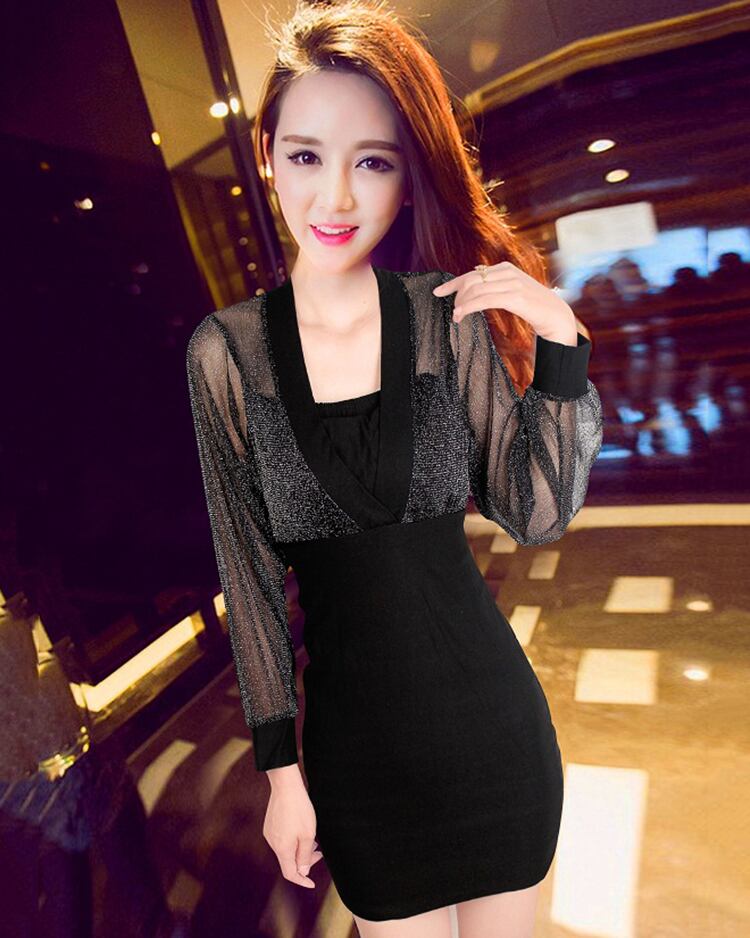 大人エレガント バイカラー シースルー ミニ ショート ワンピースドレス タイト セクシー ラメ Vネック きれいめ パーティー お呼ばれ 大人女子