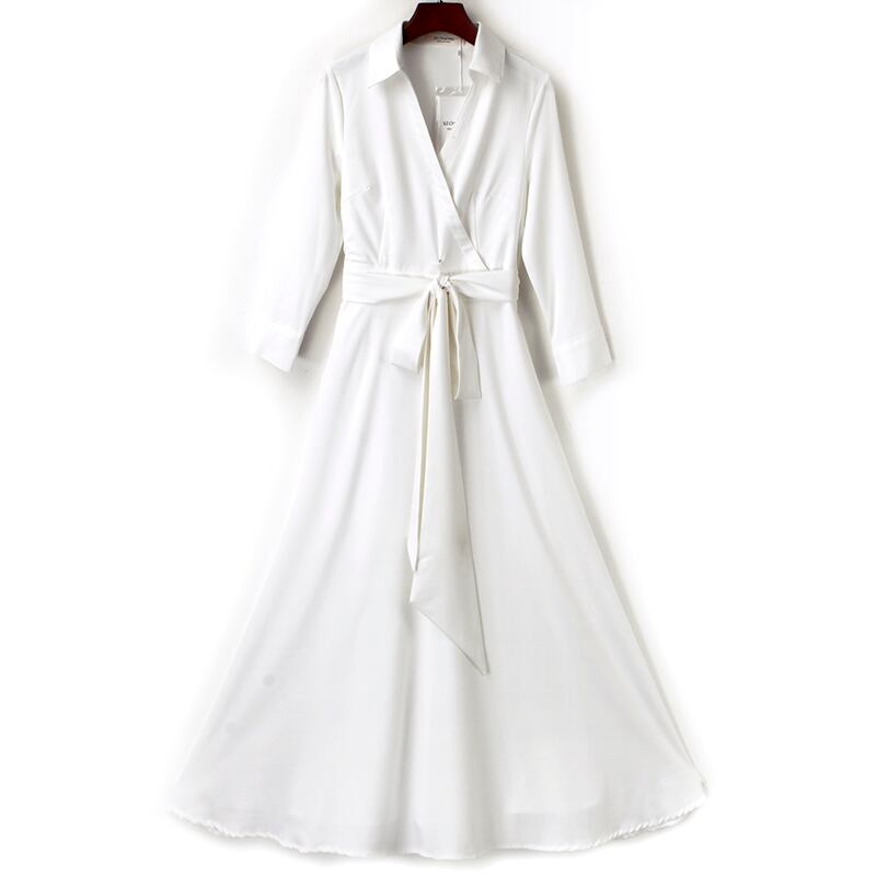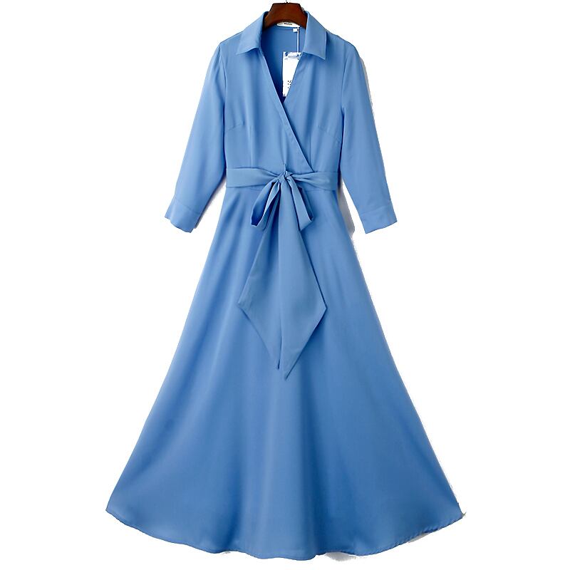 抜け感 シャツ襟 Vネック ロングマキシ丈 ワンピース☆ fsk0194