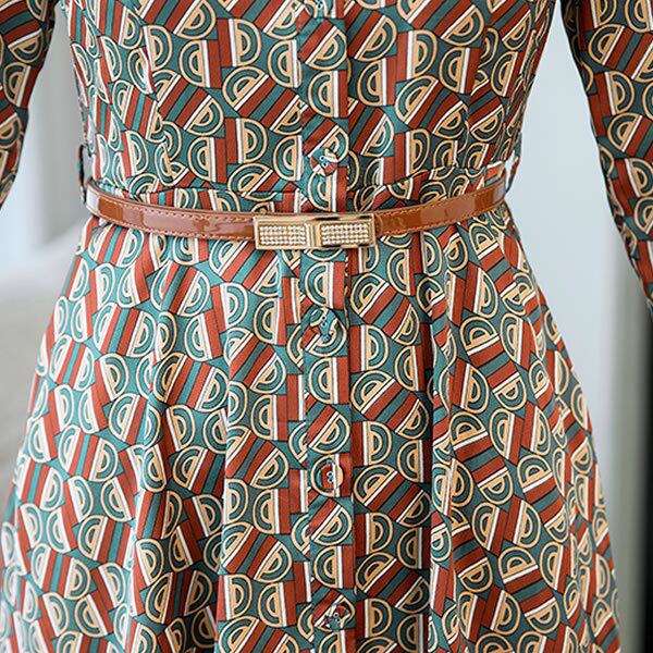 レトロで大人シックな雰囲気のベルト付きワンピースドレス。