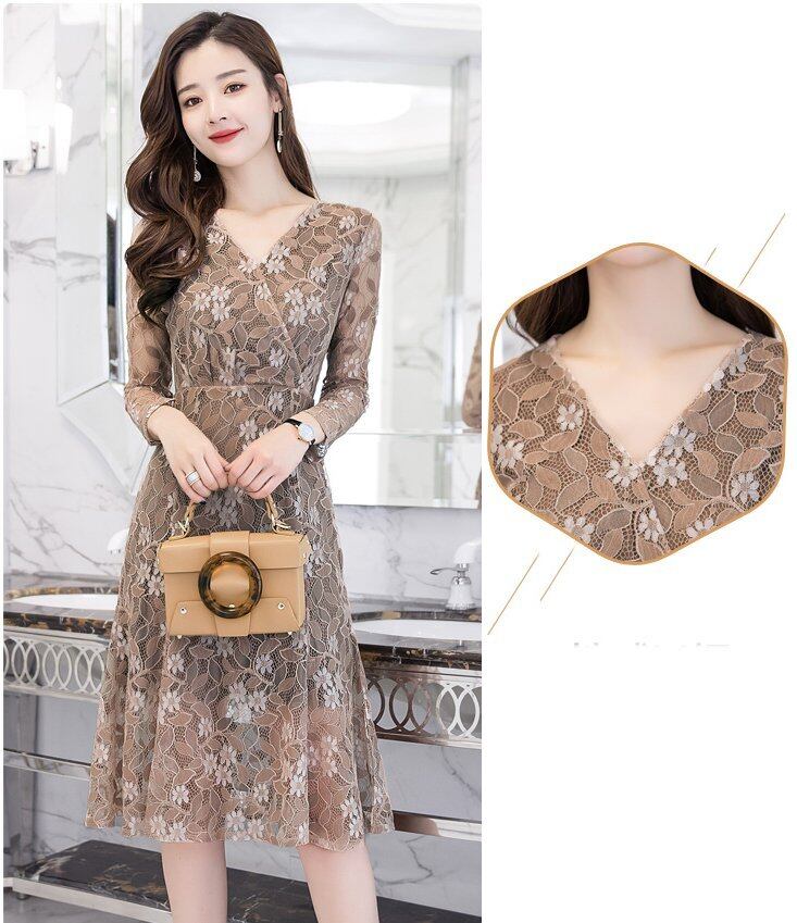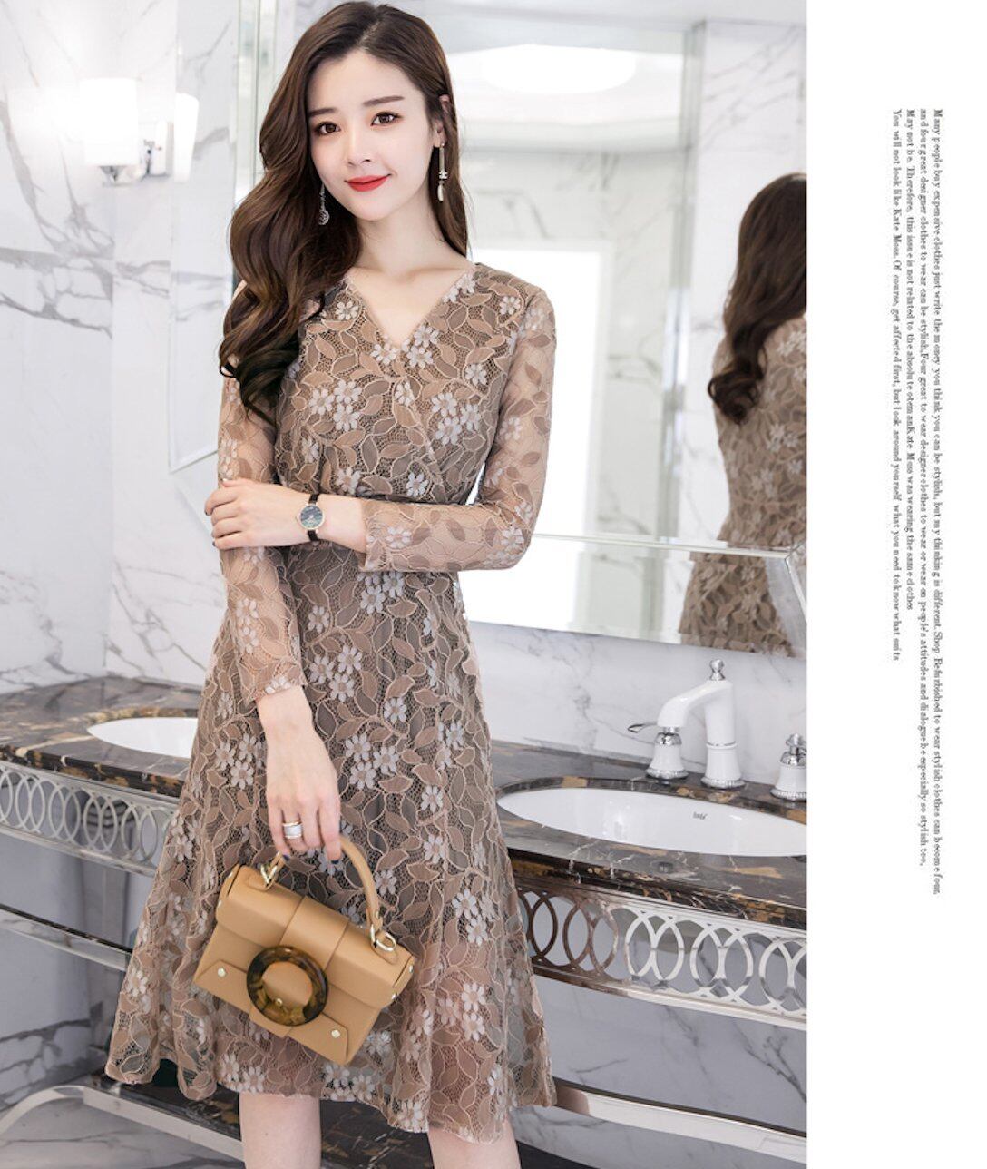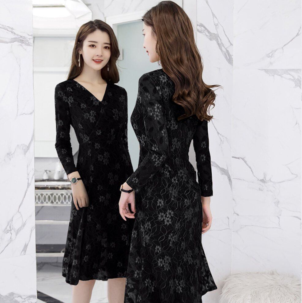【送料無料】大人エレガント 花柄 レース Vネック ミモレ丈 ワンピース ドレス fsk0233