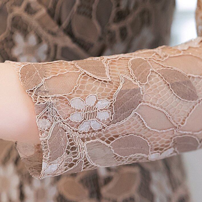 大人エレガント 花柄 レース Vネック ミモレ丈 ワンピース ドレス 透け感 シースルー フレア Aライン お呼ばれ 結婚式 パーティー きれいめ 大人女子