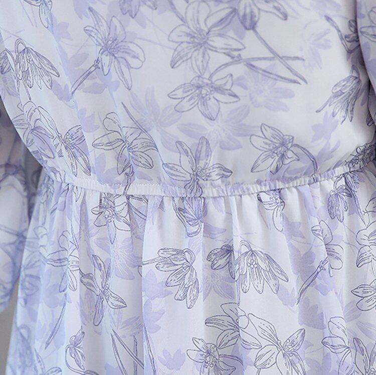 【送料無料】花柄 透け感 Vネック フレア袖 パステルカラー ワンピース ドレス fsk0239