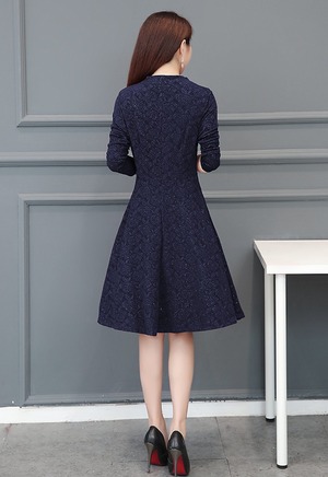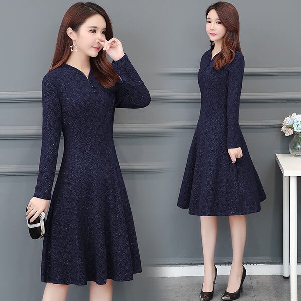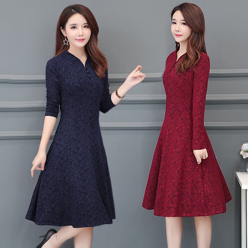 大人エレガント バラ柄 レトロ ワンピース 結婚式 前ボタン きれいめ ドレス 大きいサイズ フレア 長袖 膝丈 結婚式 パーティー 二次会