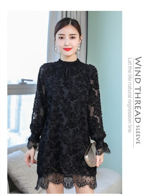 【送料無料】花柄レース ワンピース 長袖 シースルー ミニ ドレス 大人透け感 30代 fsk0286