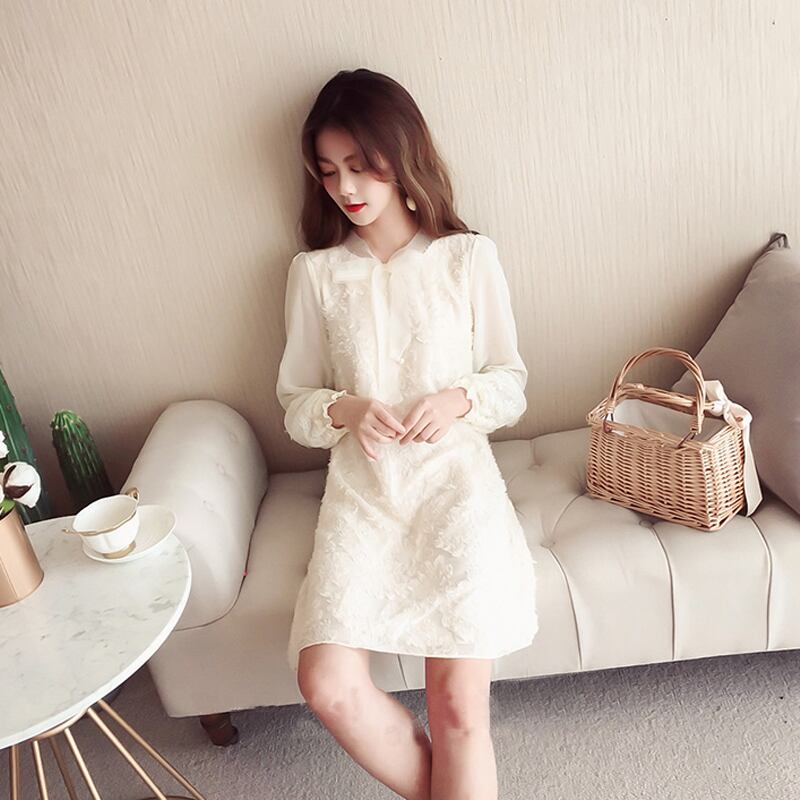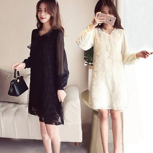 花柄レース 長袖ワンピース 袖シースルー ミニ ドレス 大人透け感 20代 30代 fsk0287