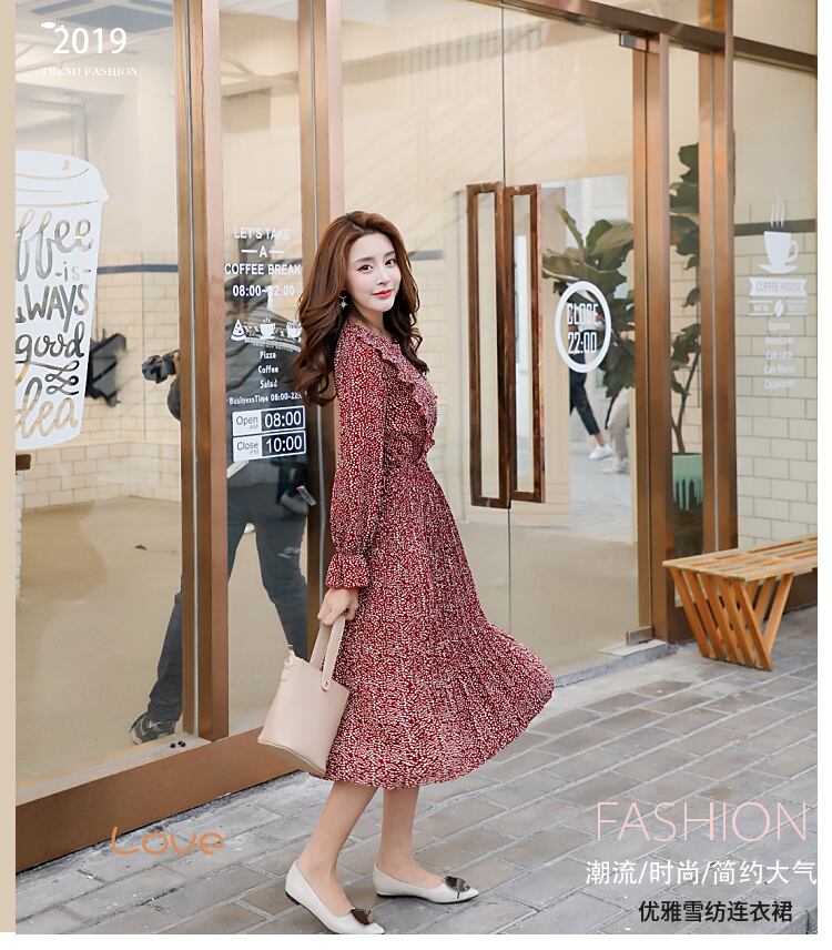 【送料無料】花柄シフォンドレス ワンピース ベルスリーブ プリーツ ミディアム丈 フリル 女子会 デート fsk0291
