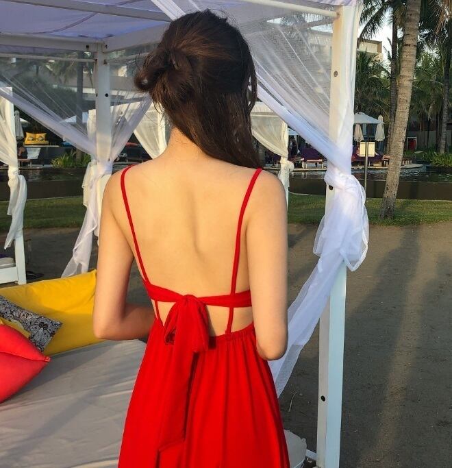 華奢な肩紐と、裾フレアが女性らしいルックに仕上げてくれます。