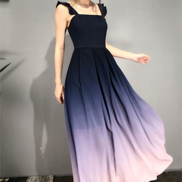 【送料無料】ノースリーブ ロングフレアワンピース イブニングドレス マキシ丈 プリーツ fsk0311