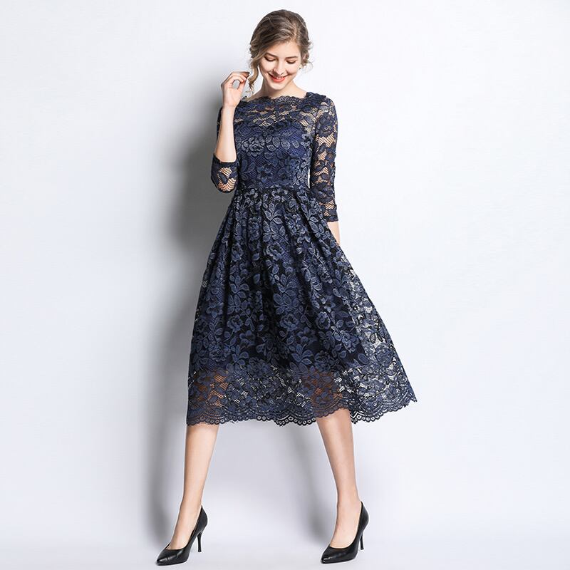 総レースワンピース 結婚式 レディース 透け感 膝丈 ミモレ丈 ミディアム丈