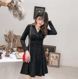 コルセットベルトがポイントのワンピース。