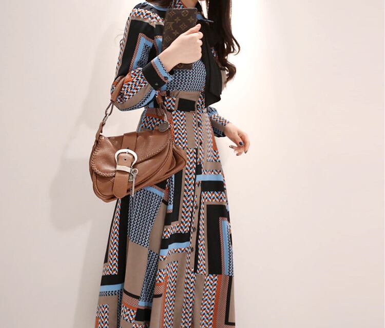 【送料無料】ロングワンピース 長袖 リボンタイ ロングワンピ 前開きワンピース 大人かわいい☆fsk0379