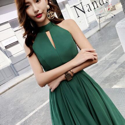 【送料無料】ホルターネック フィッシュテール バックリボン シフォン ワンピース イブニングドレス fsk0405