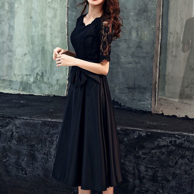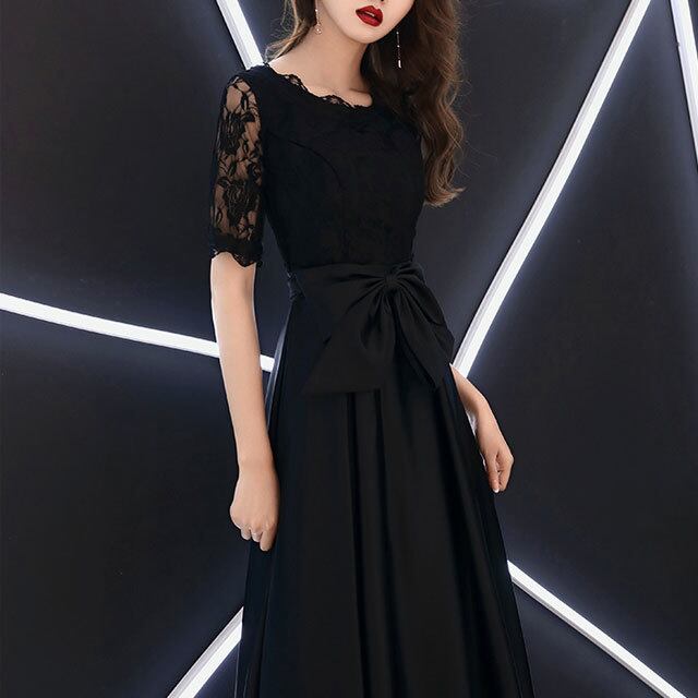 【送料無料】高級 エレガント レース 七分袖 ロングスカート ウエストリボン ロングドレス パーティドレス 結婚式 二次会 fsk0412