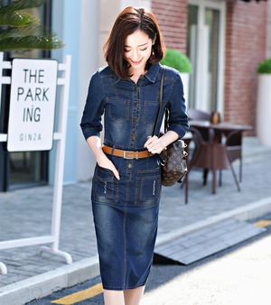 ワンピース デニム レディース 女子会 タイトスカート スリット 10代 20代 30代 40代