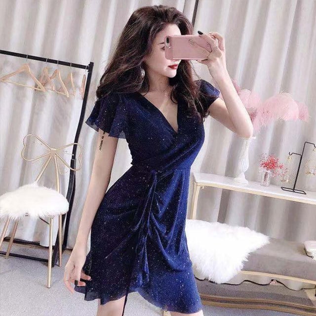 Vネック ラメ タイトフレアスカート セクシー ドレス fsk0602