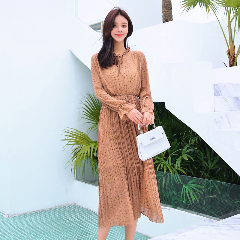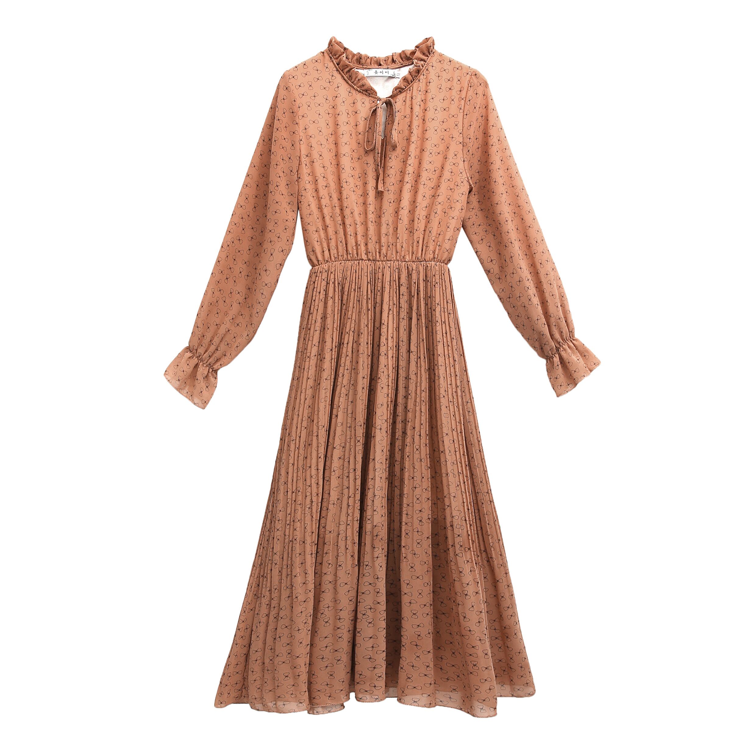 ワンピース シフォンワンピース シフォン ミモレ丈 長袖 フリル袖 リボン柄 Aライン 大人可愛い 春夏 お出かけ 通勤 デート