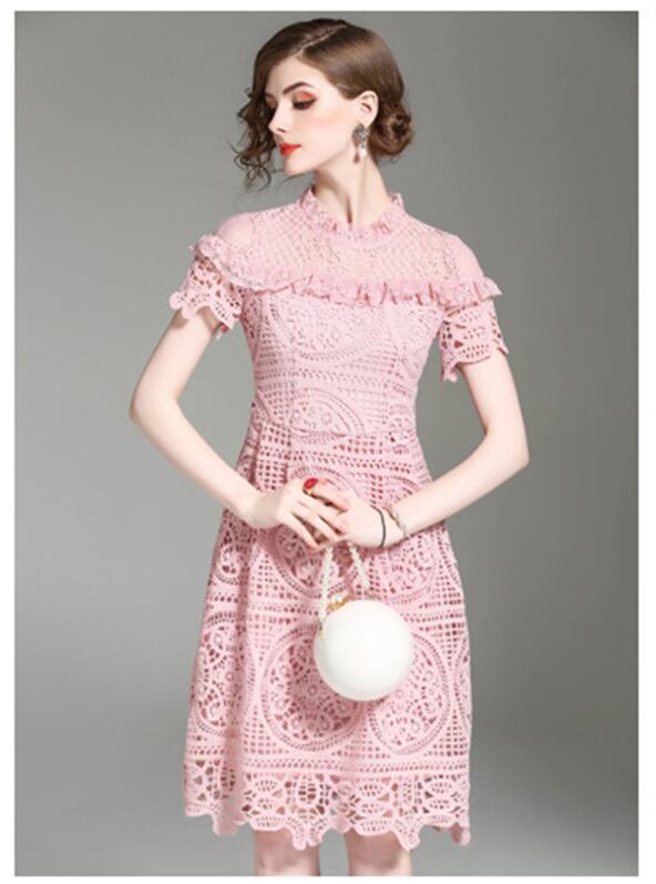 パーティードレス お呼ばれ 半袖 ガーリー ワンピース ひざ丈 可愛い 結婚式 二次会 フリル