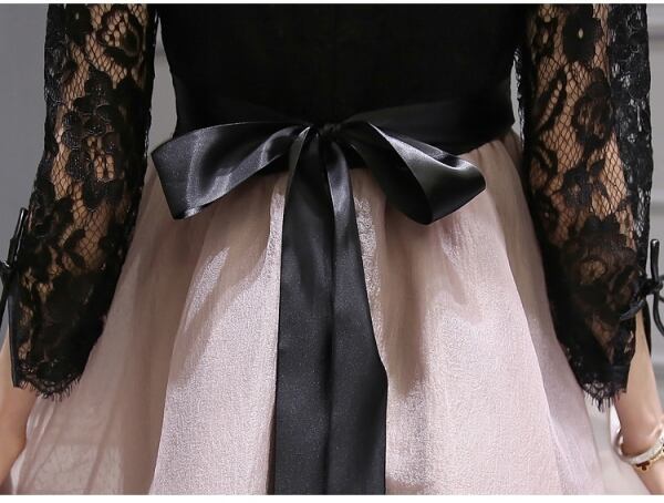 パーティードレス 結婚式 二次会 ワンピース 結婚式ドレス お呼ばれワンピース 20代 30代 40代 袖あり ミニ 黒 レース 刺繍 花柄 fk1090
