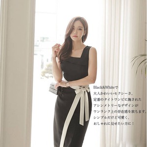 Black&Whiteで大人可愛いセクシーさ。定番のタイトワンピに施されたアシンメトリーなデザインがワンランク上の存在感を放ちます。シンプルだけど可愛く、オシャレに見せたい方へオススメです。