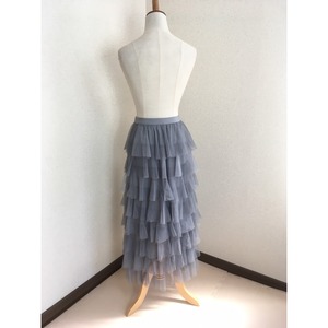 マキシ丈 スカート ロング丈 無地 チュール レイヤード ハイウエスト フリル カジュアル 大人可愛い 夏 20代 30代 ガーリー
