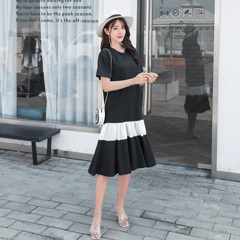 ワンピース レディース 大きいサイズ 半袖 白黒 ゆったり カジュアル フリル 大人可愛い 夏